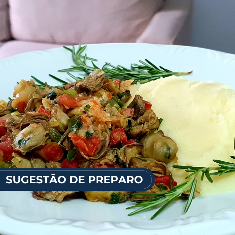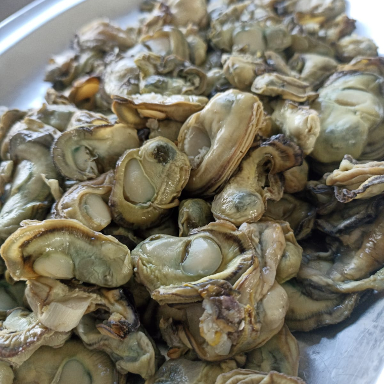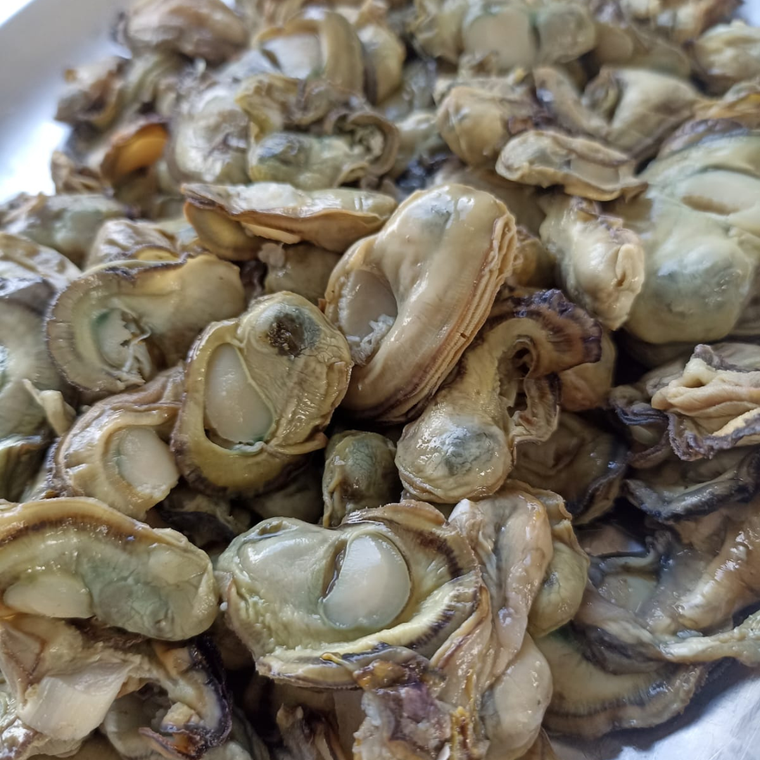 Pequenas ostras, entregues já fora da concha, com carne macia.
